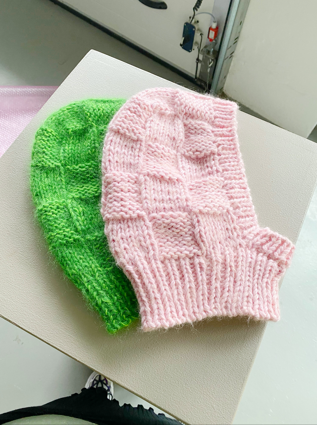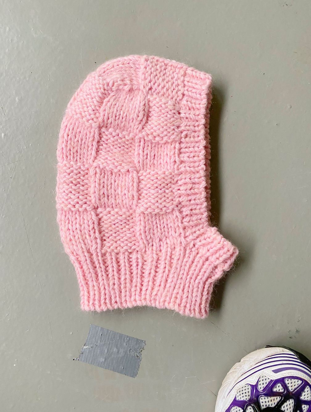 Chunky balaclava with texture knit from the top down. Chunky Balaclava with check structure which is formed with knit/purl stitches.