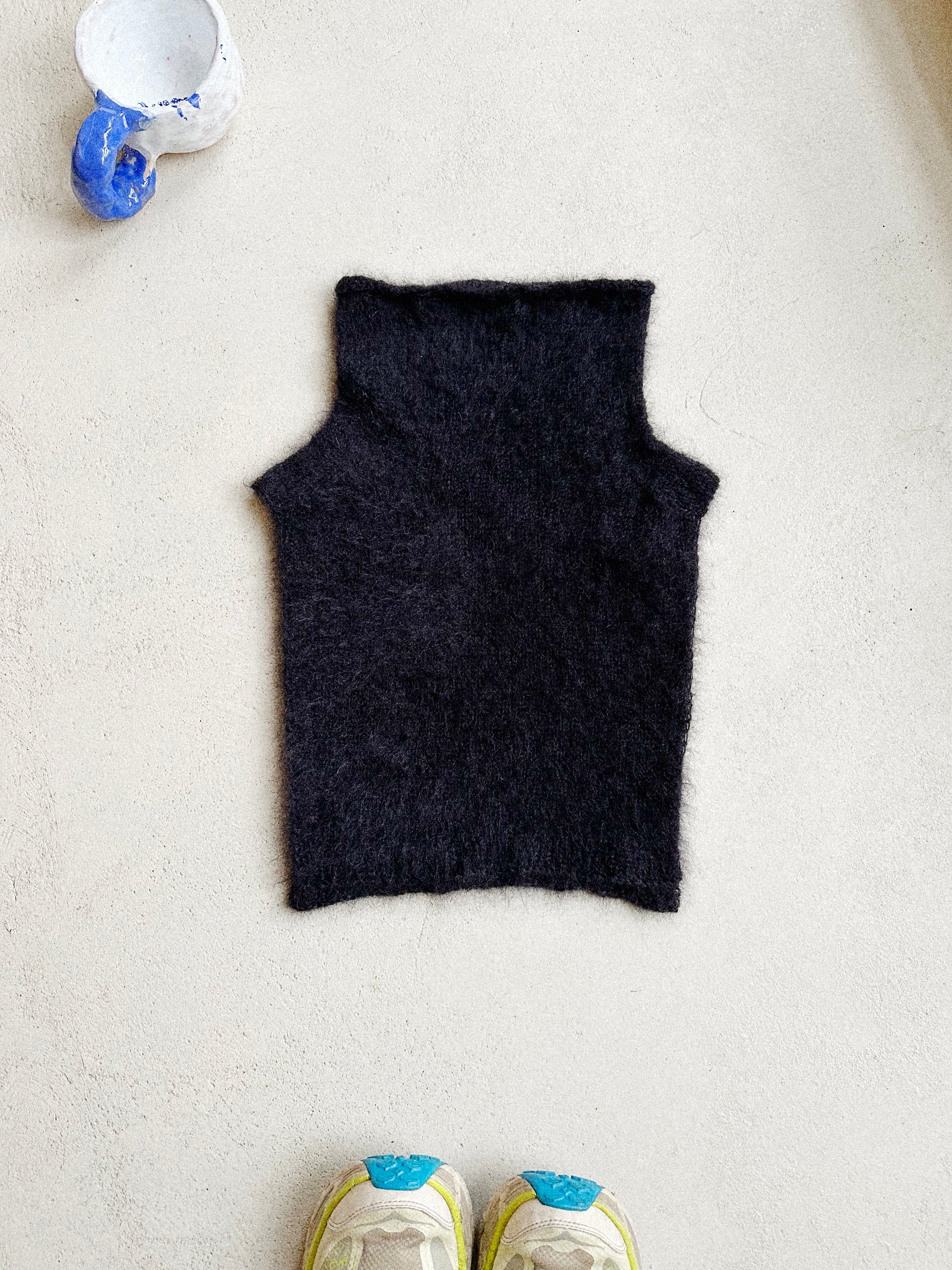 Fat Fur Light Neck Warmer is knit from the top down with two strands of yarn held together throughout.