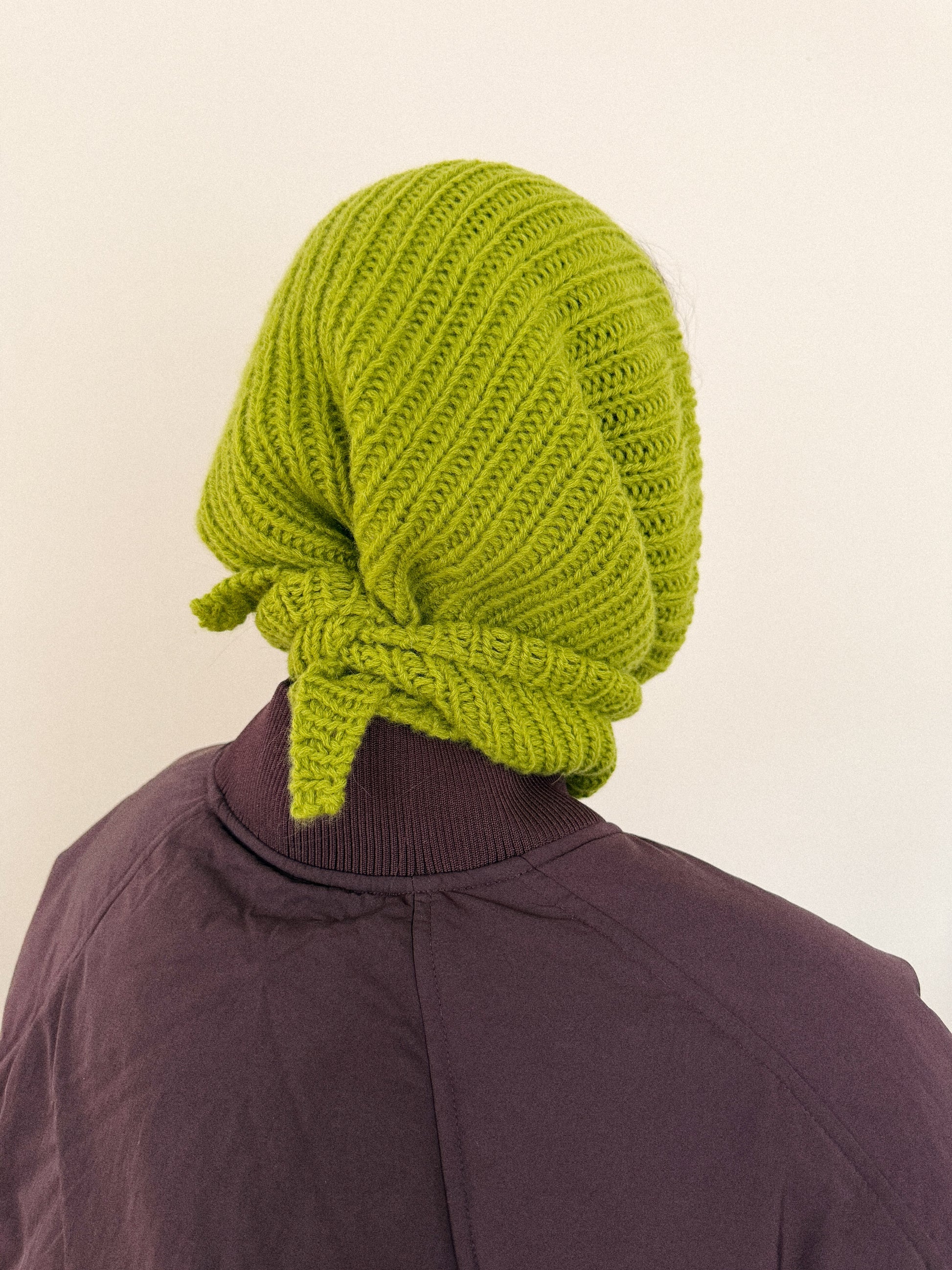 Tørklædet strikkes frem og tilbage i rib. Formen skabes ved hjælp af vendinger, der gradvist udvider arbejdet fra midten og ud mod siderne. Til sidst strikkes alle masker sammen igen, inden der afsluttes med italiensk aflukning.