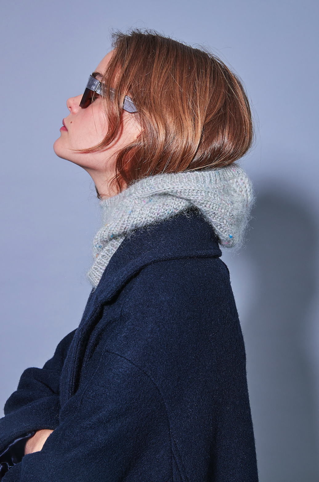 Lun balaclava med mange smukke detaljer. Balaclavaen strikkes nedefra og op med ombukket ribkant.